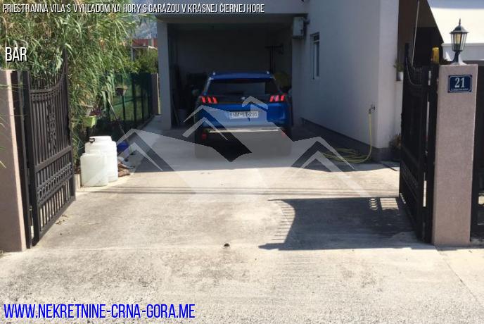 K domu sú dve prístupové cesty, parkovacie miesto pre päť áut a garáž