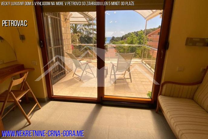 1. poschodie-dve veľké obývacie izby s výhľadom do záhrady, na more a prístup do dvora, 1 spálňa, šatňa, WC-sprcha, kuchyňa (plne vybavená - Umývačka riadu, veľká chladnička).