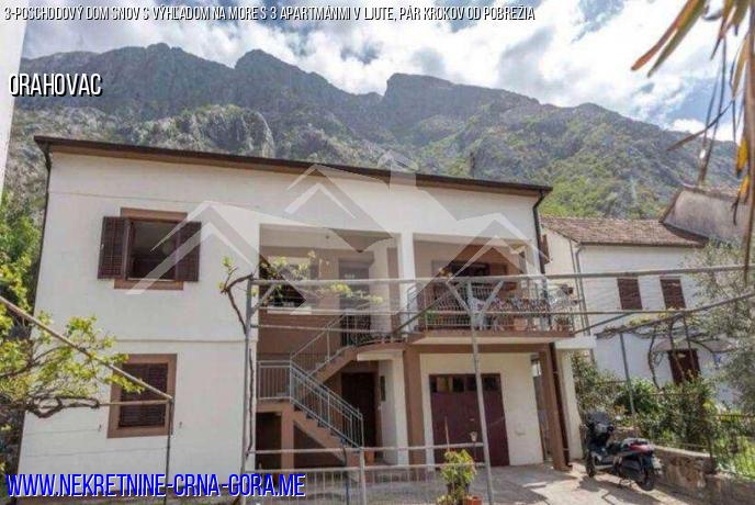 V zátoke Kotor v obci Ljuta neďaleko Orahovac, dom na predaj 60 metrov od mora.
