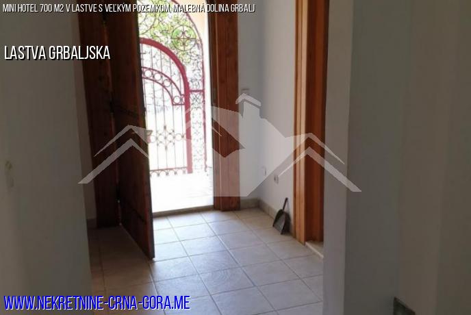 Trojpodlažný dom, ideálny pre hostel, ktorý sa nachádza v obci Lastva v údolí Grbal. Dom je napojený na všetky inžinierske siete, s vlastnou studňou na zásobovanie vodou, elektrinou, telefónnou linkou a internetom. Veľký oplotený pozemok 3094 m2 s kamennou stenou z červeného kameňa.