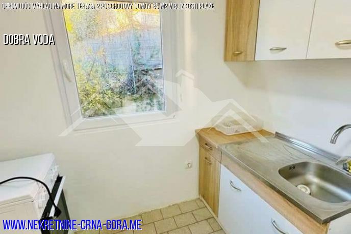 Na druhom poschodí sa nachádza kuchyňa, obývacia izba, kúpeľňa a dve spálne s prístupom na krásnu terasu s nádherným výhľadom na more. Garáž. Vzdialenosť od mora je asi 400 metrov.