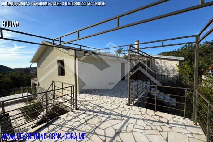 Tento priestranný dom s rozlohou viac ako 220 m2 sa nachádza na pozemku 600 m2 len 7 minút jazdy od centra Budvy.