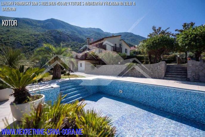 Dom s veľkým nádvorím, prístavbou a bazénom v najkrajšej časti Kotoru v oblasti Scalari s krásnym výhľadom na záliv.