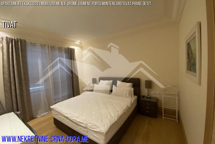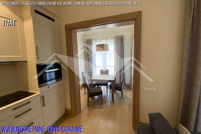 Apartament ekskluziv me një dhomë gjumi, i mobiluar plotësisht në katin e 4-të. Apartamenti është 80 m2 (68 m2 apartament + 12 m2 tarracë) dhe përbëhet nga një dhomë gjumi, një dhomë të hapur të jetesës me zonë ngrënie dhe kuzhinë të veçantë, një banjo dhe një tarracë me pamje nga deti. Ndërtesa "Ksenia" është një nga më të dëshirueshmet në Porto Montenegro për shkak të stilit dhe cilësisë së ndërtimit. Porto Montenegro nuk është vetëm një kompleks rezidencial elitar, por edhe një marinë e klasit të parë për jahte, ku vijnë jahtet më të mëdha nga e gjithë bota. Në fakt, projekti është një mini-qytet i përshtatshëm për të jetuar dhe rekreacion me një infrastrukturë të zhvilluar, duke përfshirë Hotel Regent, restorante, bare të këndshme, një kompleks sportiv, galeri, butikë të markave botërore.