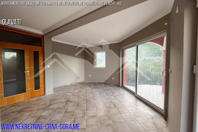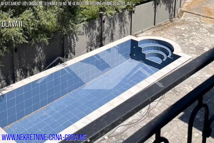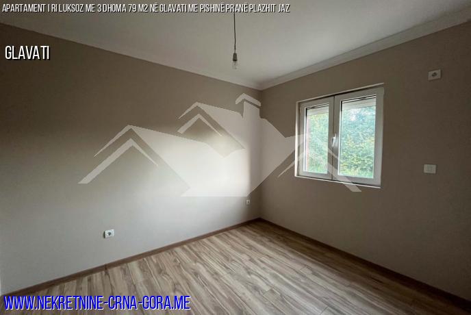 Apartament i ri në shitje në një kompleks të mbyllur në Glavati pranë Budvës me një pishinë, zonë pikniku dhe parkim për 8 makina.