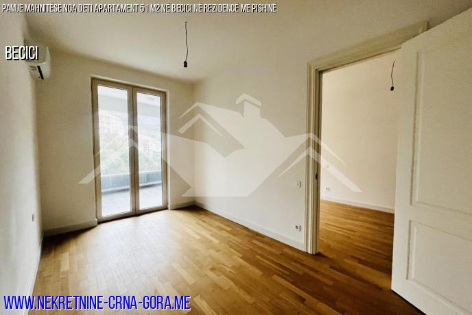 Apartamenti i ri 51 metra katrorë ka një dhomë gjumi të veçantë dhe ndodhet në katin e parë të një kompleksi luksoz me një pishinë.