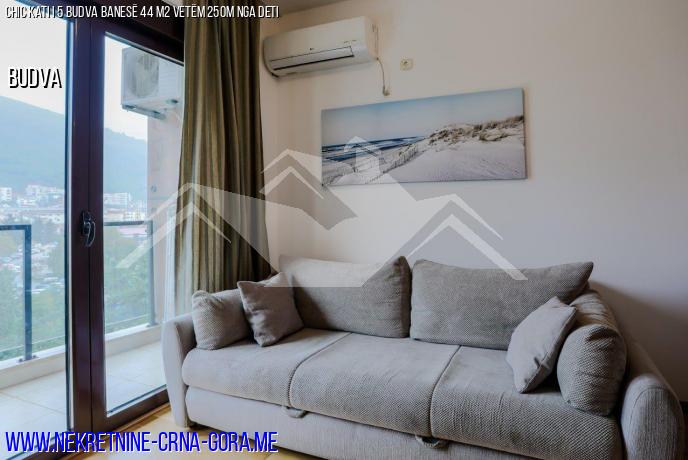Apartamenti ndodhet në një ndërtesë të re banimi me ashensor në zemër të Budvës, 2-3 minuta më këmbë nga zona kryesore e këmbësorëve, bare, kafene, restorante dhe plazhe.