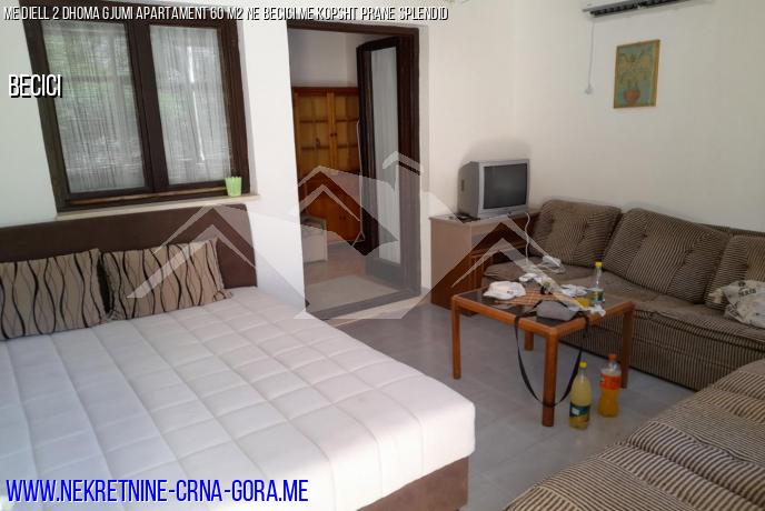 Në Becici, 200 m nga Hoteli Splendid, një apartament me diell me dy dhoma gjumi në katin e parë me një komplot është për shitje.