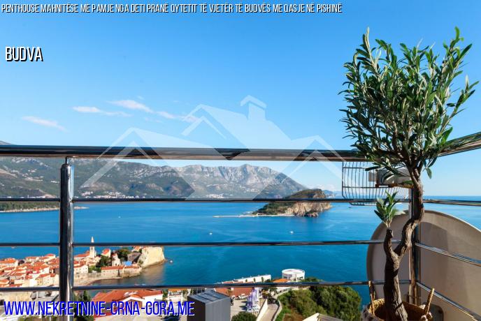 Një apartament i gjerë me tre dhoma gjumi me pamje mahnitëse të Ishullit St. Nikola dhe Qytetit të vjetër është në shitje në Budva.
