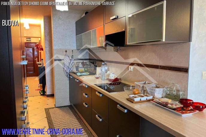 Sipërfaqja e banesës është 87 m2. Ndodhet në katin e tretë.