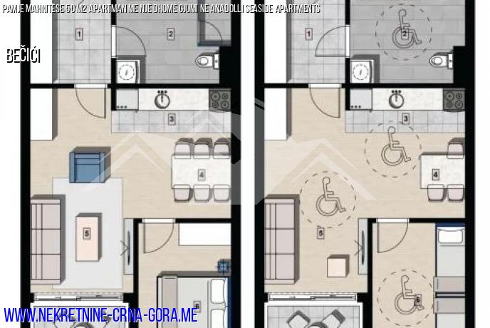 Sipërfaqja e apartamentit është 50 m2. Deti është 300 metra larg.