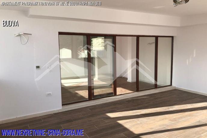 Apartamenti është i rinovuar, shumë i ndritshëm dhe i gjerë. Pamje panoramike nga dy anët (në Qytetin E Budvës dhe në anën e detit). Çdo dhomë ka ajër të kondicionuar.