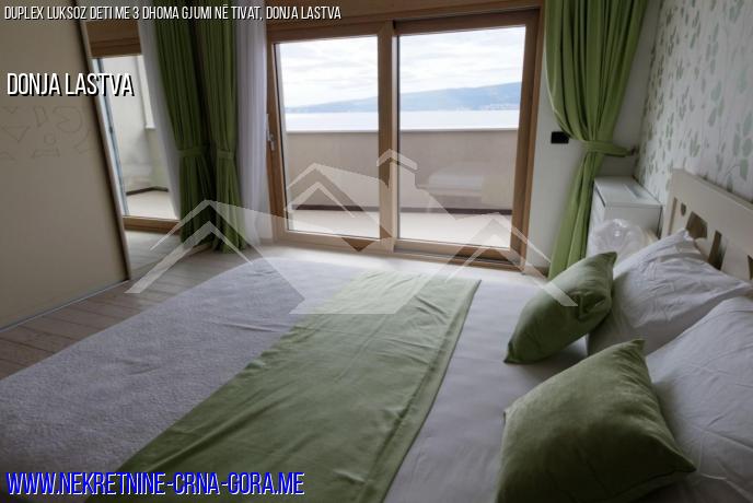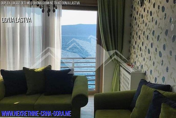 Ne ofrojmë për shitje një apartament dupleks me tre dhoma gjumi në vijën e parë nga deti I Donja Lastva, Tivat
