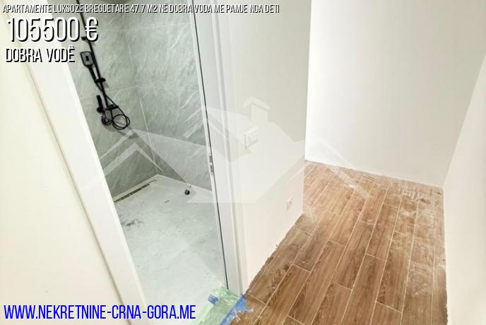 Apartamente me një sipërfaqe totale prej 47.7 metra katrorë, nga të cilat 42.5 m2 është e zënë nga një zonë banimi, janë për shitje në qytetin simpatik turistik Të Dobra Voda. Të vendosura në nivelin e dytë të një ndërtese shtatëkatëshe, këto apartamente janë pjesë e një kompleksi rezidencial që ofron pajisje të tilla si një pishinë 15 me 5 metra, një ashensor skish, furnizim të centralizuar me ujë dhe zona parkimi.