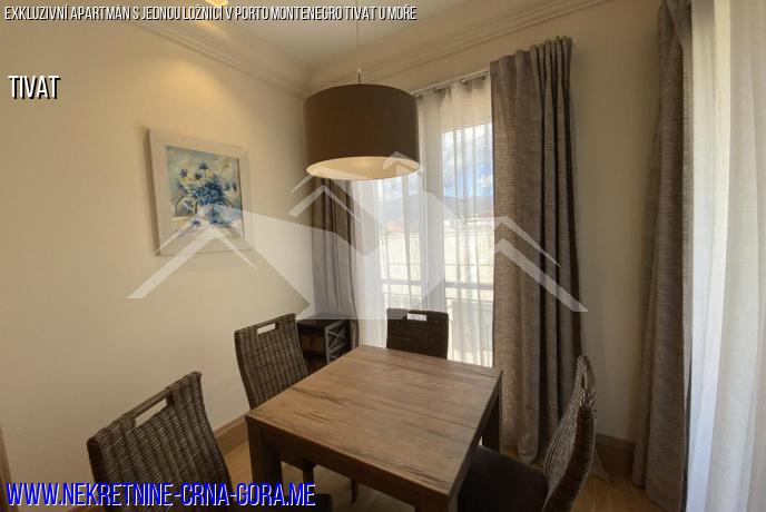 Exkluzivní dvoupokojový, plně zařízený byt ve 4.patře. Byt je 80 m2 (68 m2 byt + 12 m2 terasa) a skládá se z jedné ložnice, otevřeného obývacího pokoje s jídelnou a samostatnou kuchyní, jedné koupelny a terasy s výhledem na moře. Budova "Ksenia" je jednou z nejžádanějších v Porto Montenegro díky svému stylu a kvalitě výstavby. Porto Montenegro není jen luxusní rezidenční komplex, ale také prvotřídní jachtařská Marina, kam se sjíždějí největší jachty z celého světa. Projekt je v podstatě mini-město vhodné pro život a odpočinek s rozvinutou infrastrukturou, která zahrnuje Hotel Regent, restaurace, příjemné bary, sportovní komplex, galerie, butiky světových značek.