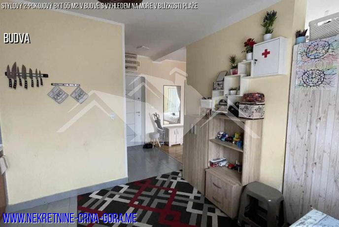 Dvoupokojový byt o celkové rozloze 55 m2 (bez balkonu 48 m2) v mainské ulici vedle supermarketu "MEGA". Byt se nachází ve 2. patře. Okna bytu mají výhled na moře, otevřený městský výhled.