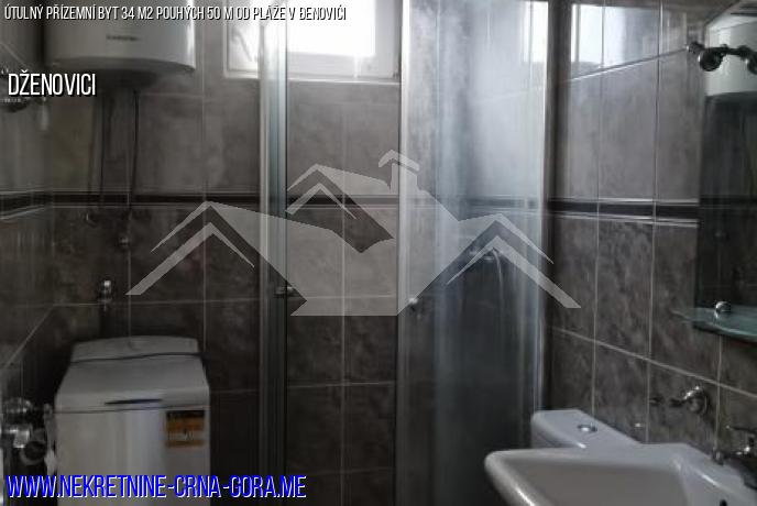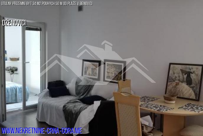 Byt o rozloze 34 m2, s 1 ložnicí, přízemí, 50 metrů od pláže.