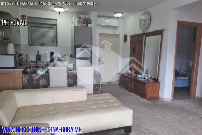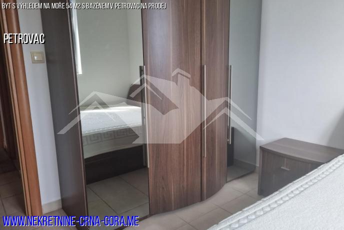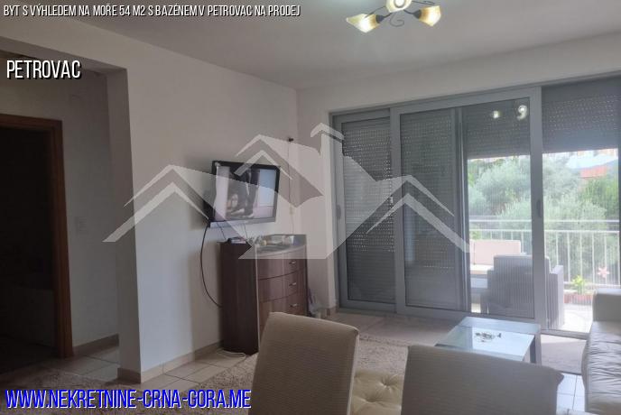 Prodej bytu 54 m2 v Petrovacu s výhledem na moře v komplexu s bazénem.