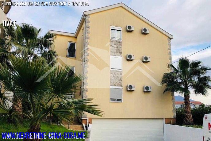 Byt 65 m2 v Tivatu se 2 ložnicemi, výhled na záliv. Čtvrť Dumidran.