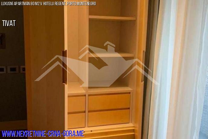 Na prodej je byt 80 m2, jedna ložnice a terasa, která má výhled na velký bazén a Marinu. Byt se nachází v prvním patře v hotelu Regent, který se nachází v srdci slavné jachtařské Mariny Porto Montenegro.