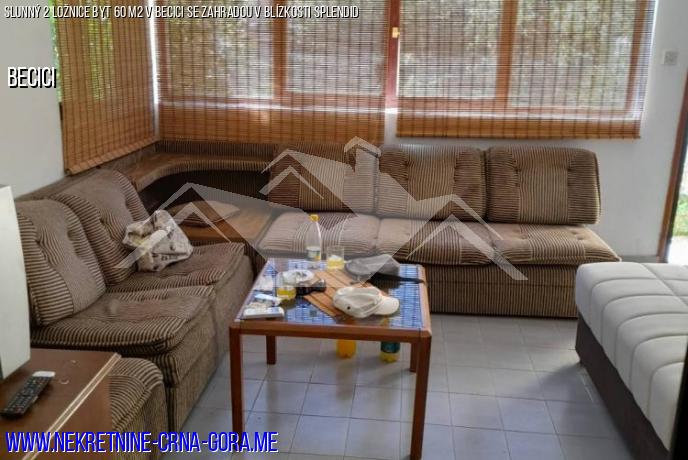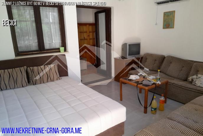 V Bečici je 200 metrů od hotelu Splendid k prodeji slunný dvoupokojový byt v přízemí s parcelou.