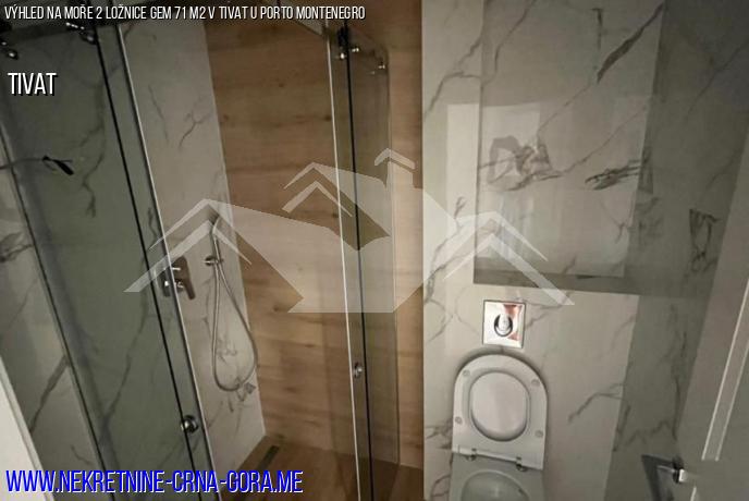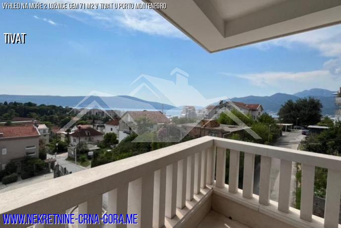 Na prodej byt se 2 ložnicemi, 1 koupelna 71,6 m2, 2 patro, v Tivat, okres Podkuk. Ze všech oken je výhled na moře. Terasa 4,9 m2.