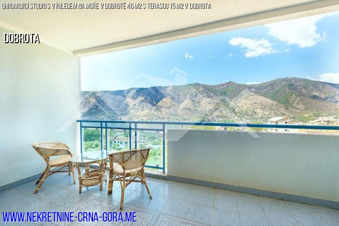 V Kotoru, Město Dobrota prodává byt-studio 46 m2 s terasou 15 m2 s panoramatickým výhledem na záliv.