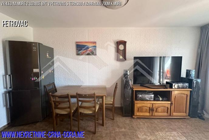 Na prodej prostorný byt v Petrovac 65m2, Terasa 9m2, 2 ložnice, s výhledem na krásnou zelenou zahradu a moře.