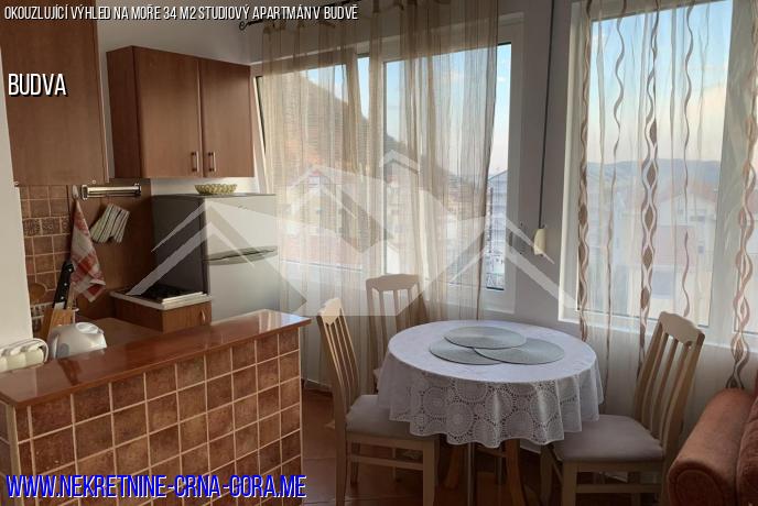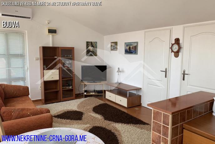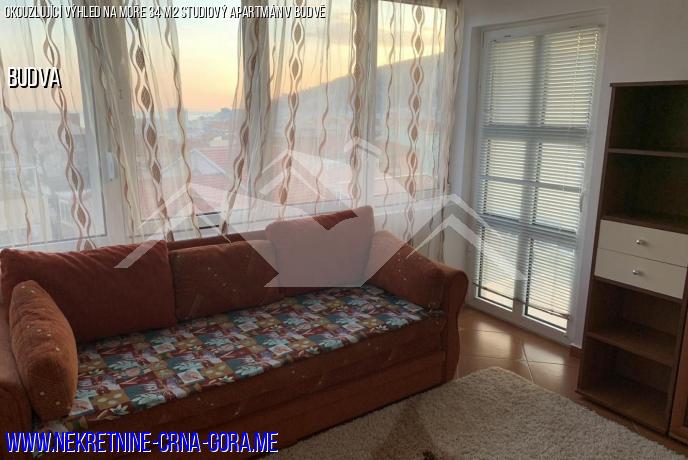 Na prodej útulný dvoupokojový byt-studio 34 m2 v Budvě s předsíní ve 3. patře 3patrového domu s krásným výhledem na moře z panoramatických oken.