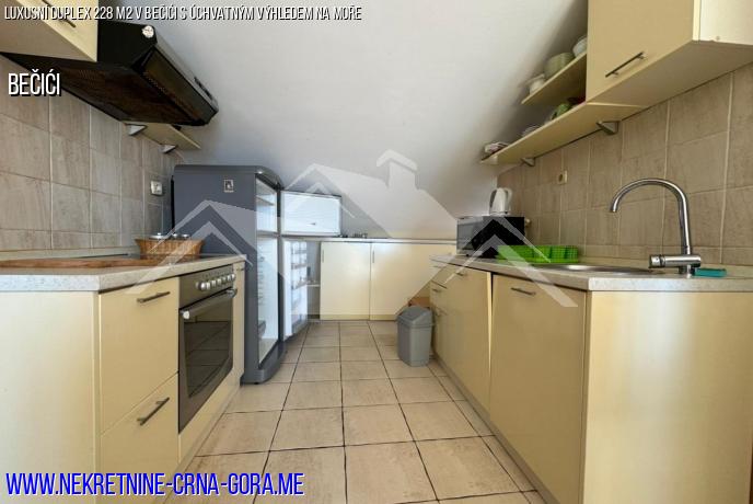 V první úrovni: prostorný obývací pokoj spojený s kuchyní, dvě ložnice, koupelna a terasa s výhledem na moře.
