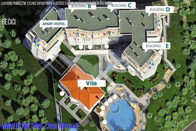 Prostorný byt v Bečici o rozloze 123 m2 s panoramatickým výhledem na moře.
