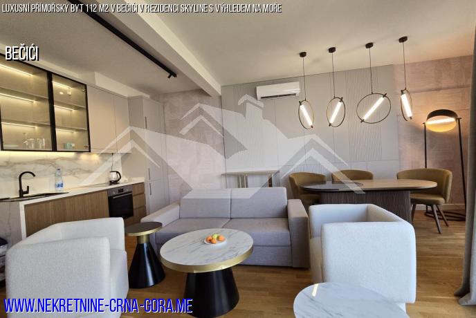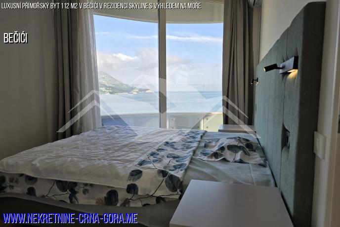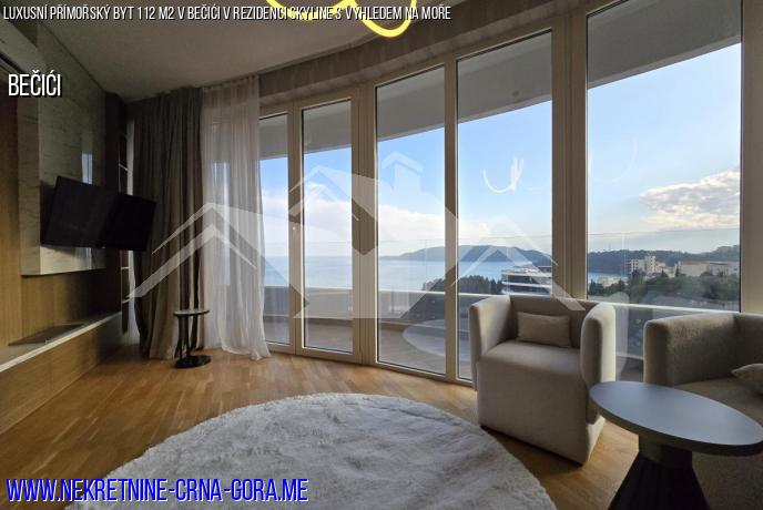 Moderní třípokojový byt v Bečici s panoramatickým výhledem na moře.