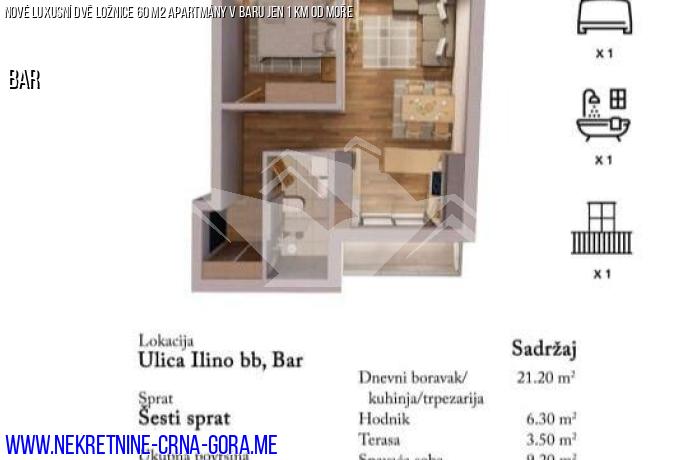 Na prodej je nový byt s čistou povrchovou úpravou v novém domě v baru 1 km od moře.