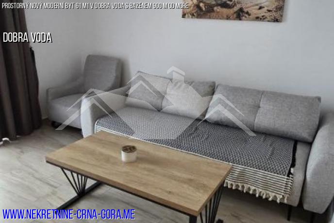 Obývací pokoj, kuchyň, dvě ložnice, koupelna a dvě terasy. K dispozici je vše potřebné pro pohodlné bydlení, kompletní sada nábytku a spotřebičů.