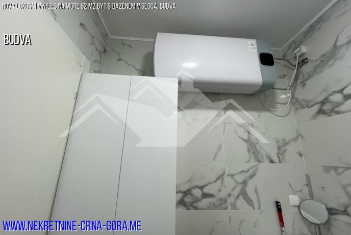 Plocha bytu je 62 m2. Struktura bytu: obývací pokoj, kuchyň, jedna ložnice, koupelna a terasa s výhledem na moře a hory.