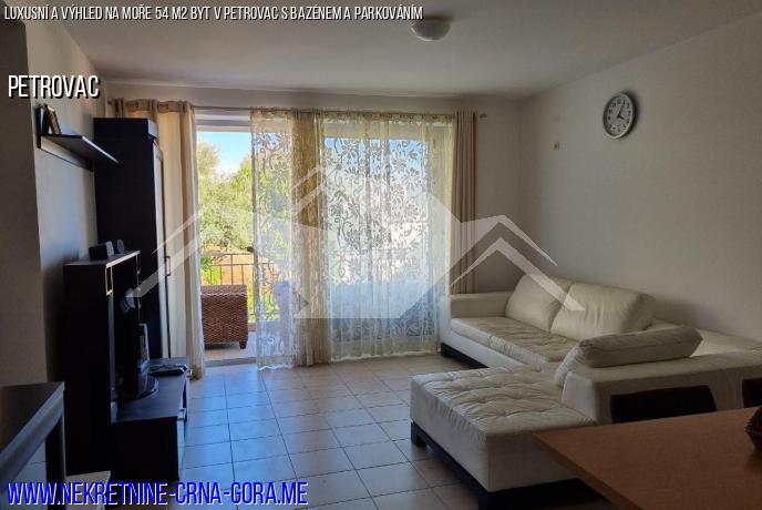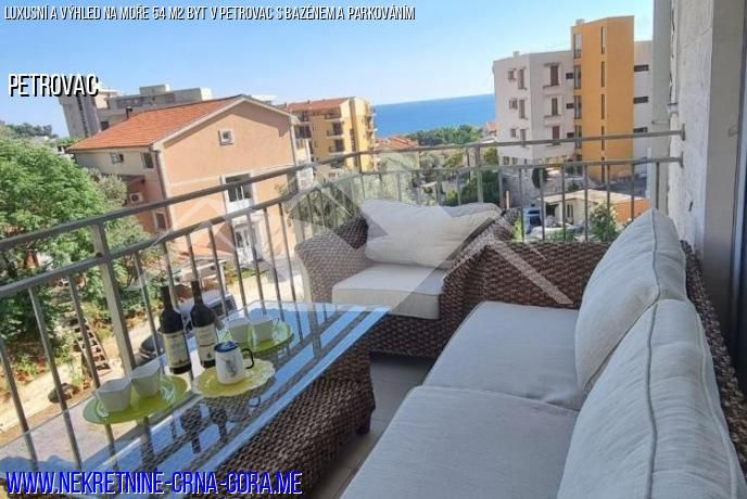В Петровац продается квартира в комплексе с бассейном. Боковой вид на море.