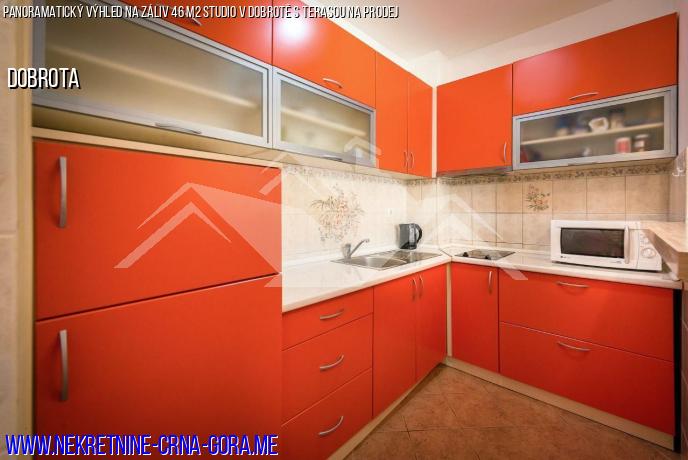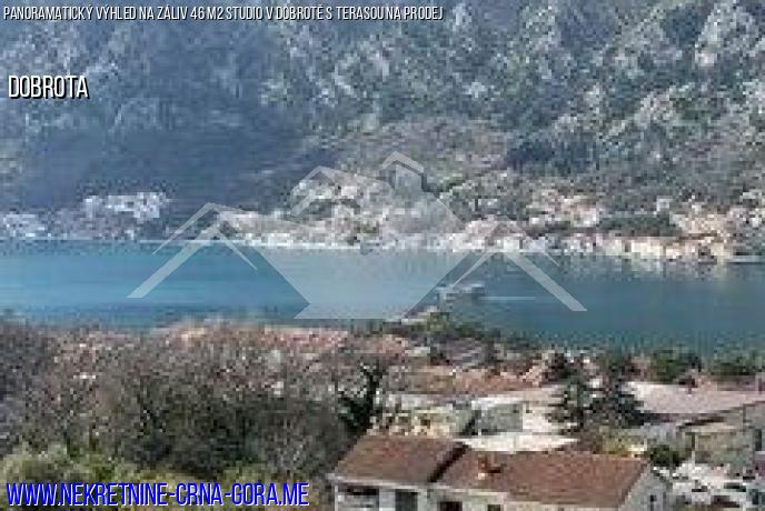 V místě Dobrota, které je na prodej byt-studio 46 m2 +15 m2 Terrassa s panoramatickým výhledem na záliv.