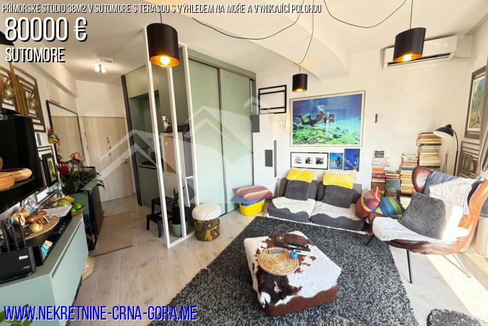 Přímořské studio 38m2 v Sutomore s terasou s výhledem na moře a vynikající polohou