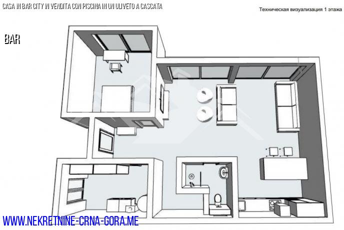 La casa viene venduta con una finitura completa, pavimenti caldi sul circuito dell'acqua, cucina attrezzata con elettrodomestici moderni, piscina 7x4 m.