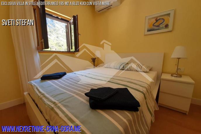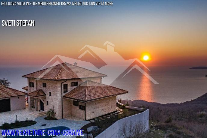 In vendita è disponibile una spaziosa villa, costruita in stile mediterraneo e con interni decorati con gusto, situata in un villaggio nella zona di Nezikuche, vicino a Sveti Stefan, ad un'altitudine di 285 m sul livello del mare. La costruzione è stata completata nel 2020. La villa è progettata e attrezzata per un soggiorno confortevole tutto l'anno.