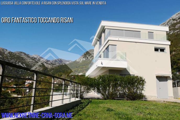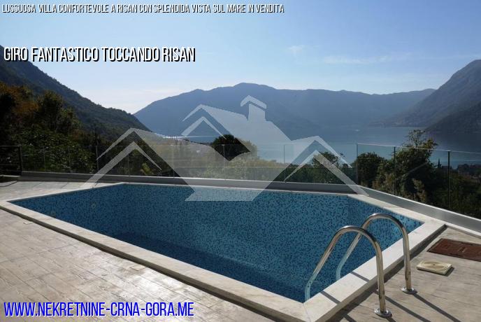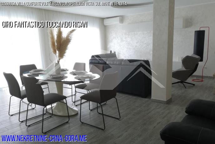 In vendita, una villa di lusso con piscina, una zona paesaggistica e una splendida vista sul Mare Adriatico e sulla città di Risan. Distanza dal mare 600m (in aereo). Si trova in un luogo tranquillo e piacevole e offre un grande comfort per il parto e la ricreazione familiare. Una nuova strada asfaltata con illuminazione cittadina conduce alla villa (1,4 km dal mare).