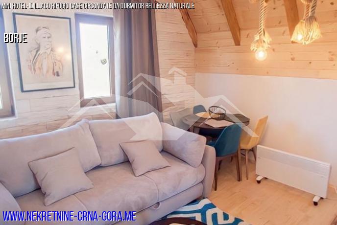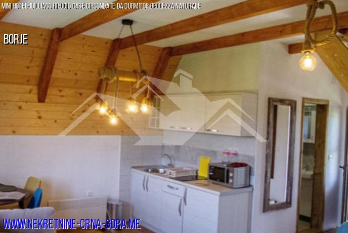 L'attività di noleggio attiva a Žabljak è in vendita: 4 Case per le vacanze in un luogo molto pittoresco, intorno a boschi, colline e prati. Punteggio su Booking 9.