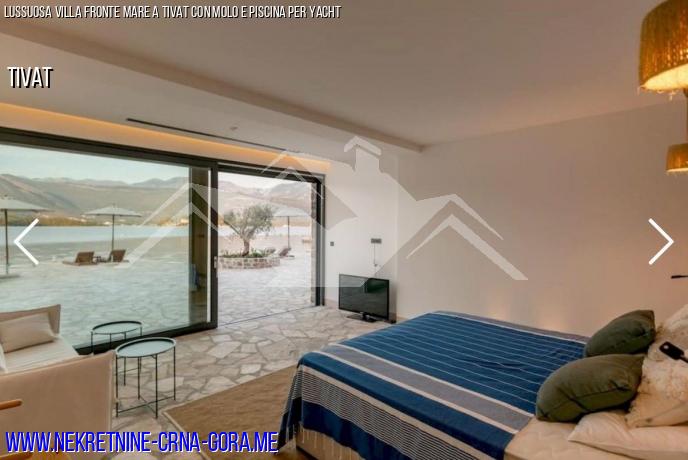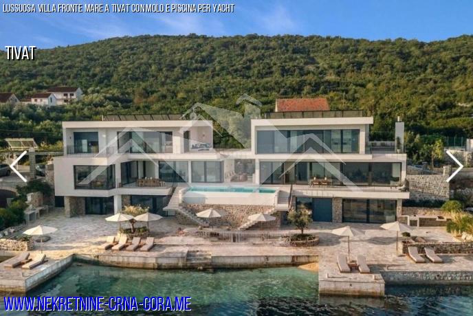 In vendita è disponibile una villa a tre piani a Tivat con sul mare con il proprio molo per barche.