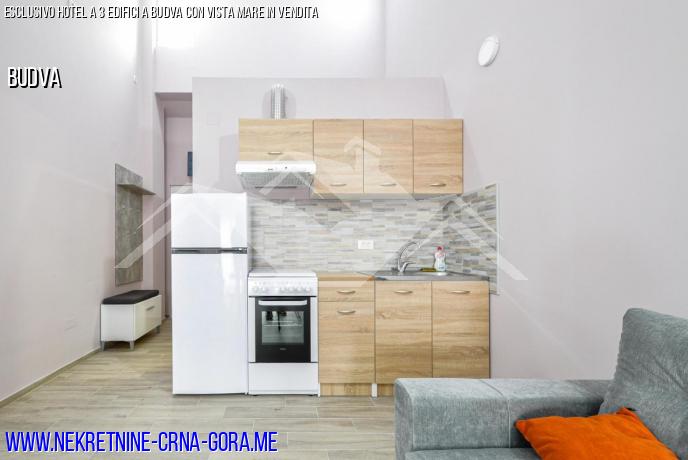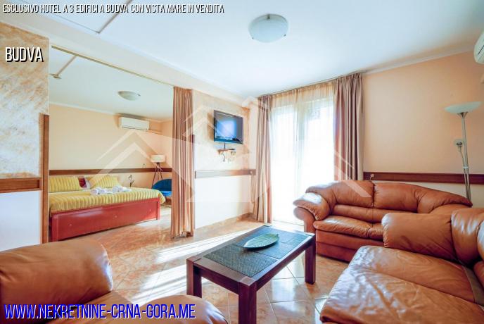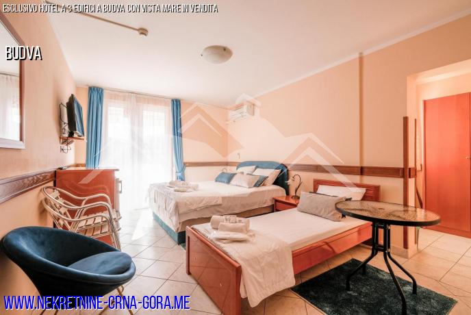 Un Business Hotel pronto e funzionante composto da 3 edifici in una zona tranquilla di Budva, la capitale turistica del Montenegro, a 5 minuti dal mare.
