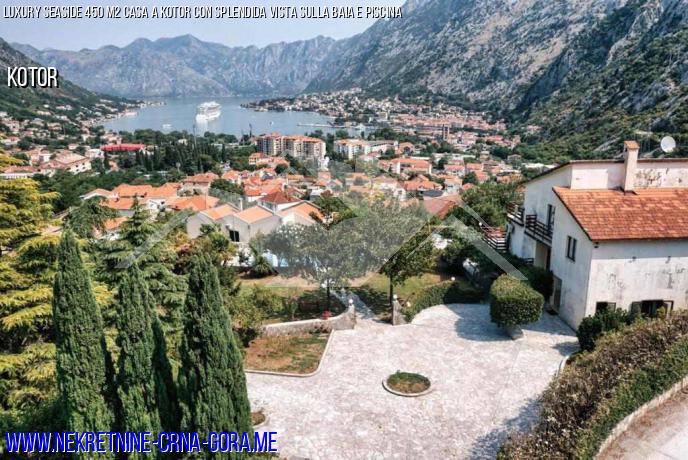 Casa con ampio cortile, dependance e piscina nella parte più bella della città di Kotor nella zona di scalari con una splendida vista sulla baia.