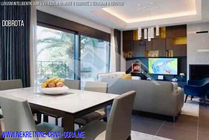 Město Dobrota (Kotor) prodává nový plně vybavený dům 210m2 se soukromým pozemkem 330m2.