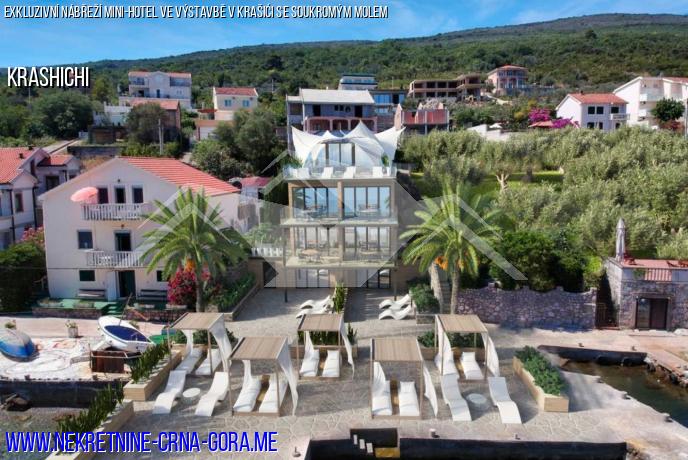 Hotel se nachází v obci Krašice, Opština Tivat. 1. linka od moře s vlastním kotvištěm a parkovištěm pro auta.