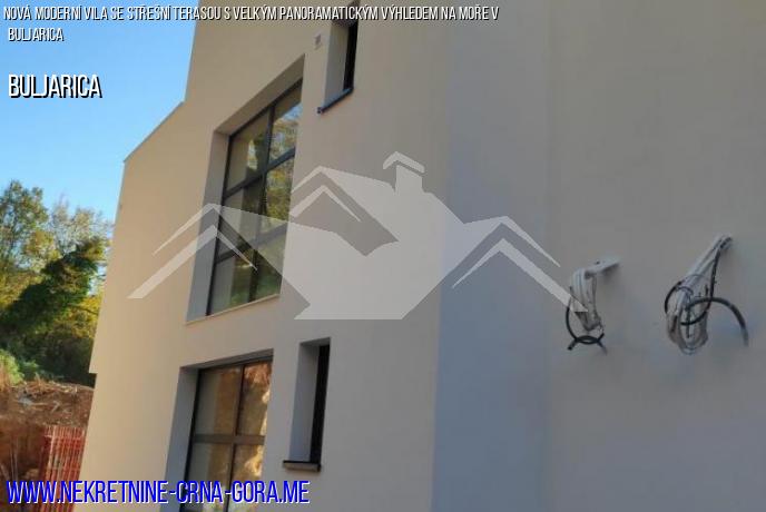 Třetí patro: otevřená střešní terasa. Celá vila je klimatizovaná a na střeše jsou instalovány solární panely. Petrovac je vzdálený jen 4 minuty jízdy.
