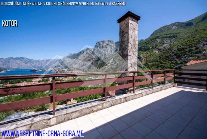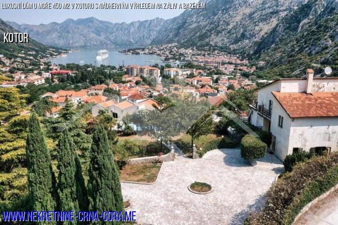 Dům s velkým dvorem, křídlem a bazénem v nejkrásnější části města Kotor v oblasti Scalari s krásným výhledem na záliv.