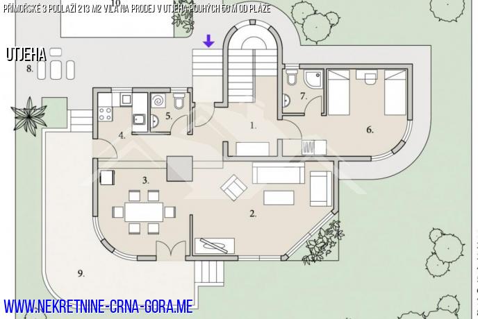 Dům se nachází 1 minutu chůze od pláže - třetí dům od moře. V klidné a velmi krásné oblasti Černé Hory na samém břehu Jadranu se prodává plně vybavená rekreační Vila pro 10-15 osob. Možnost přestavby vily na Mini Hotel.